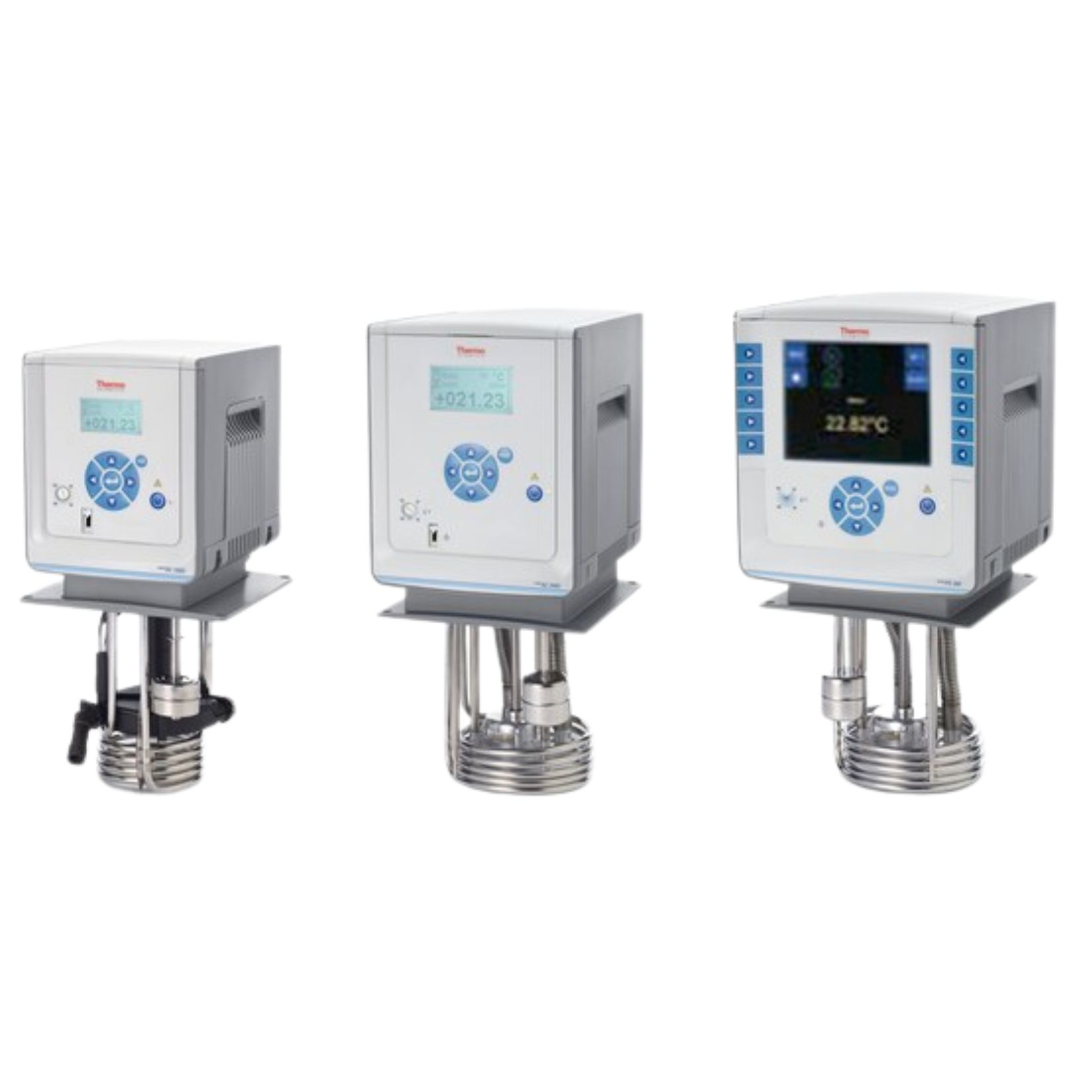 Thermo Scientific immersion circulators provide precise temperature control for laboratory applications. The SC, AC, and PC Series support internal and external circulation. Maximum temperatures reach up to 300 °C depending on the model. Suitable for analytical, research, and process applications.