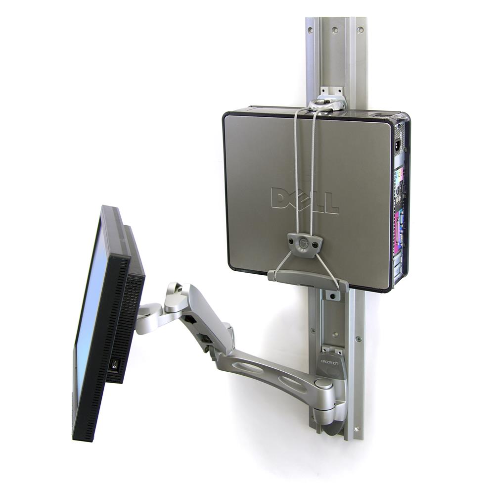 De Ergotron Universal CPU Holder is ontworpen voor het veilig en efficiënt monteren van een computerbehuizing aan een werkstation of trolley. Deze houder maakt het mogelijk om de CPU onder een werkblad of aan een kolom te bevestigen. Dit zorgt voor een opgeruimde en ergonomische werkplek.