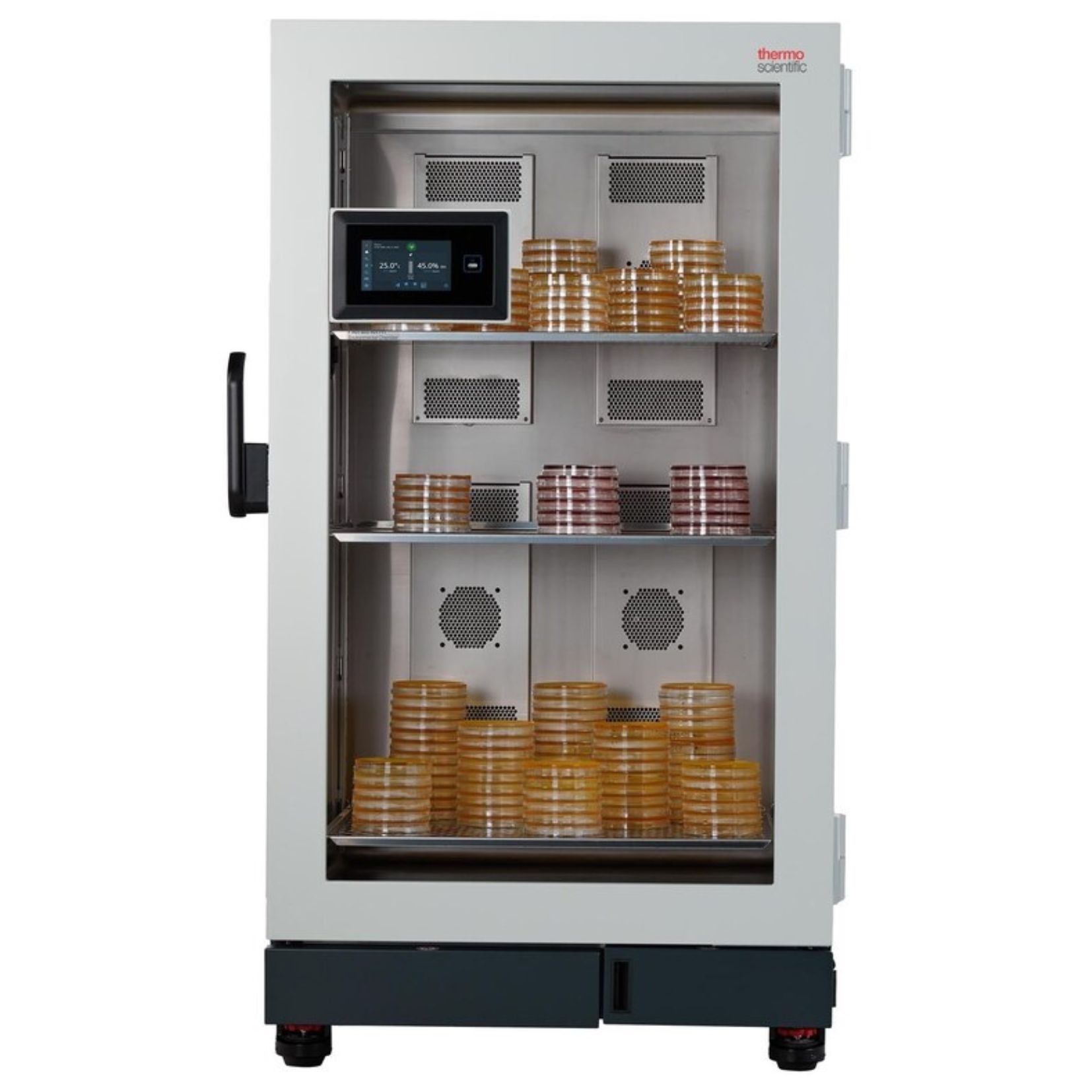 De Heratherm CO2 Environmental Chambers bieden gecontroleerde incubatieomstandigheden voor celkweektoepassingen. Temperatuur, luchtvochtigheid en CO2 worden nauwkeurig geregeld. De kamers zijn geschikt voor gereguleerde laboratoria. Installatie is eenvoudig via een standaard stroomaansluiting.
